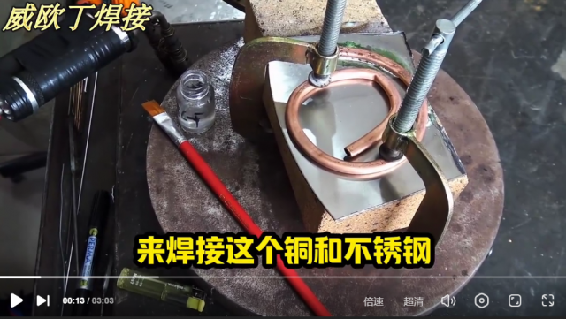 上述铜管和不锈钢板异种焊接解决方案:低温火焰钎焊。